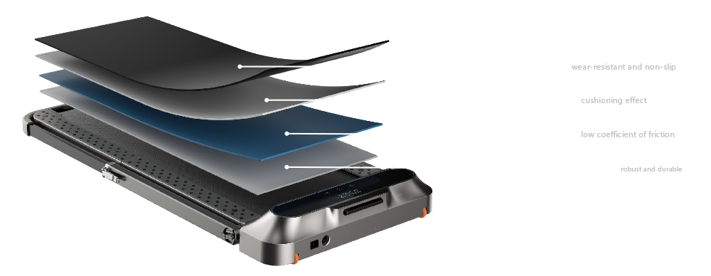 EVA cushioning layer with comfortable texture; smooth layer with low friction coefficient, wear-resistant and anti-slip running belt.
